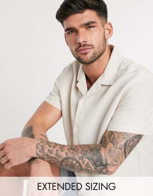 ASOS DESIGN relaxed fit linen shirt with revere collar in ecru
