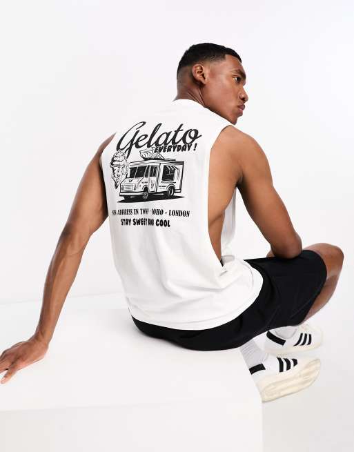 ASOS DESIGN relaxed fit singlet in white with gelato back print