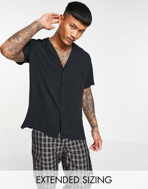 ASOS DESIGN relaxed fit viscose shirt with low revere collar in black