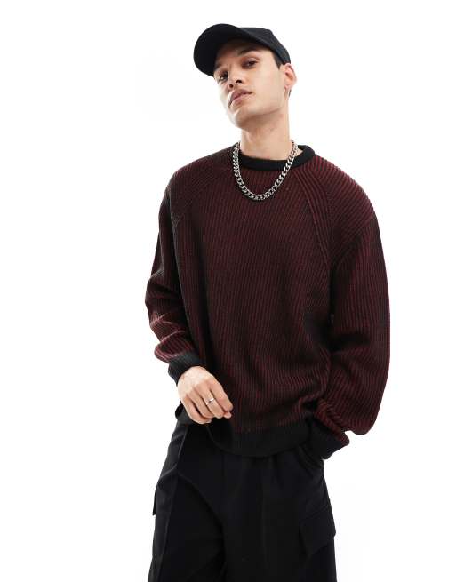 ASOS DESIGN relaxed knitted jumper in burgundy pleated rib