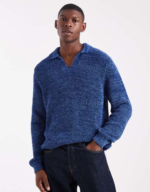 ASOS DESIGN relaxed knitted notch neck polo in blue twist