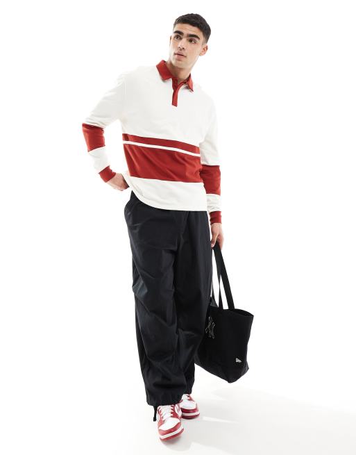 ASOS DESIGN relaxed long sleeve rugby polo in heavyweight 220gsm with cut and sew panels