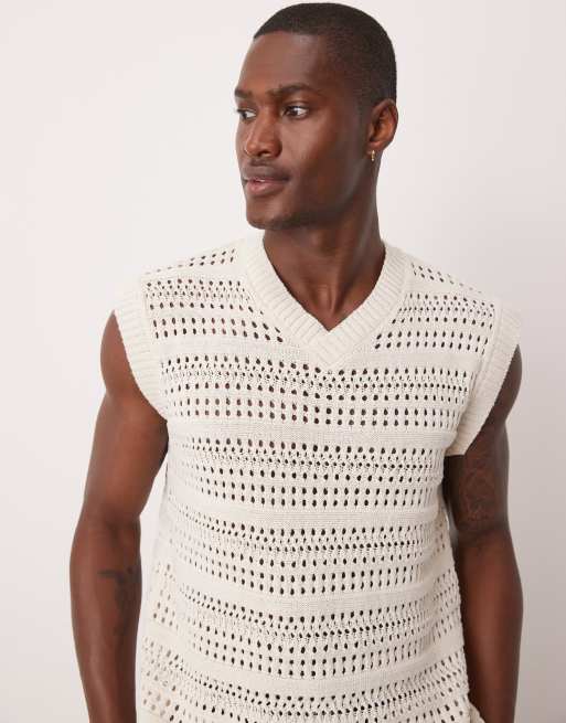 ASOS DESIGN relaxed open knitted singlet in ecru