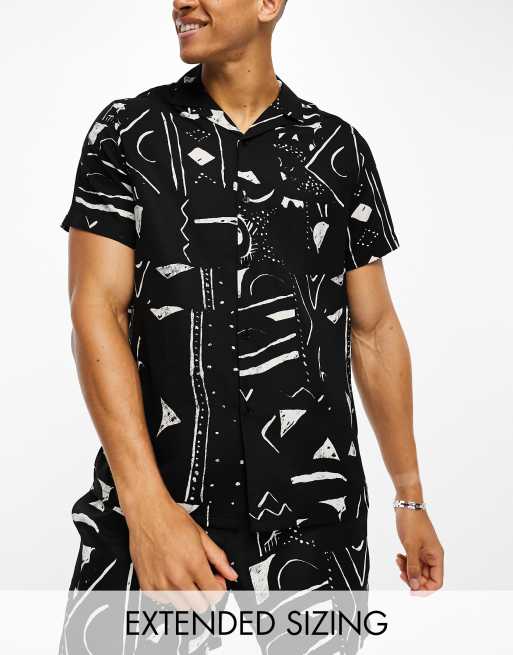 ASOS DESIGN relaxed revere shirt in black abstract print (part of a set)