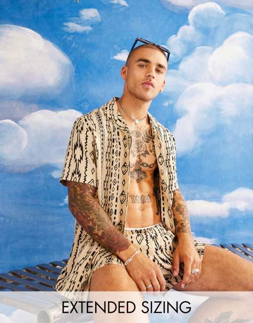 ASOS DESIGN relaxed revere shirt in pattern stripe (part of a set)