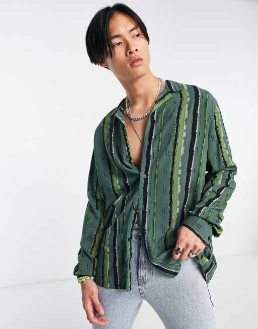 ASOS DESIGN relaxed revere shirt with painted style stripe in green