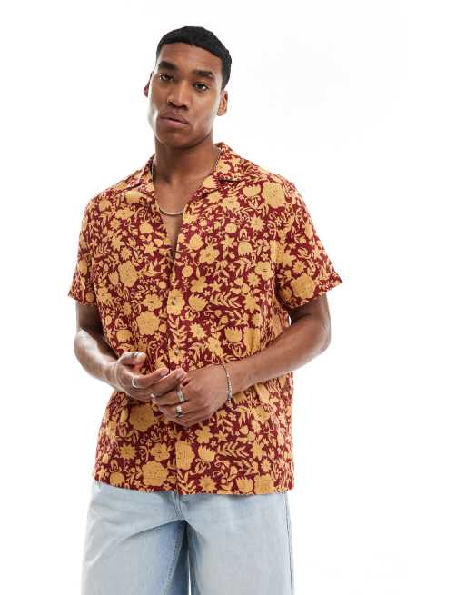 ASOS DESIGN relaxed revere textured shirt in orange and red floral print