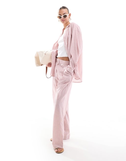 ASOS DESIGN relaxed shirt & pants set in red stripe