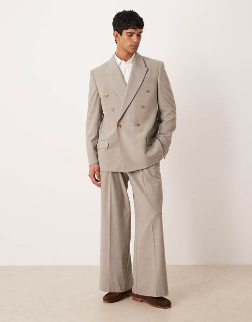 ASOS DESIGN relaxed square shoulder suit in beige flannel