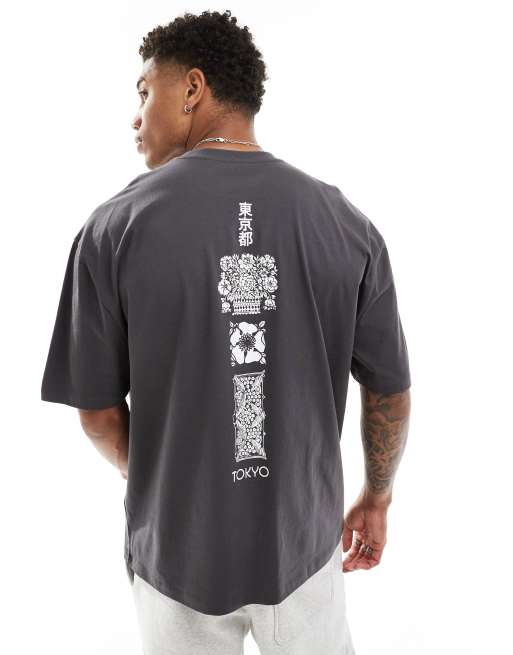 ASOS DESIGN relaxed t-shirt in dark grey with souvenir spine print