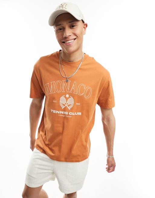 ASOS DESIGN relaxed t-shirt in orange with Monaco print