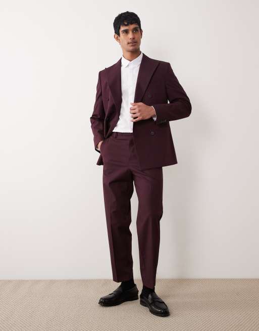 ASOS DESIGN relaxed tapered suit pants in burgundy