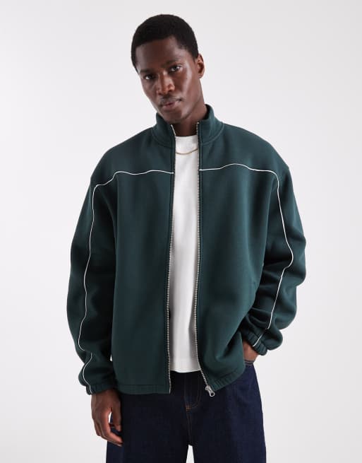 ASOS DESIGN relaxed track jacket with piping in dark green