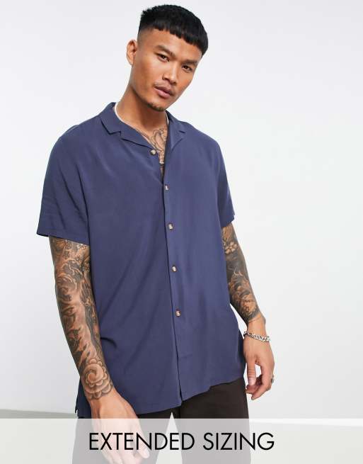ASOS DESIGN relaxed viscose shirt in navy