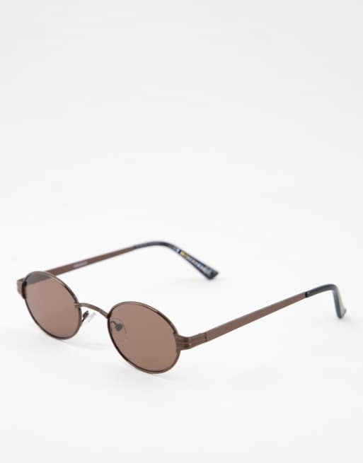 ASOS DESIGN retro 90s oval sunglasses in brown with brown lens