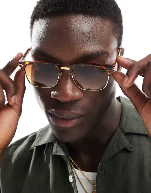 ASOS DESIGN retro sunglasses with brown ombre lens and tortoiseshell and gold frame