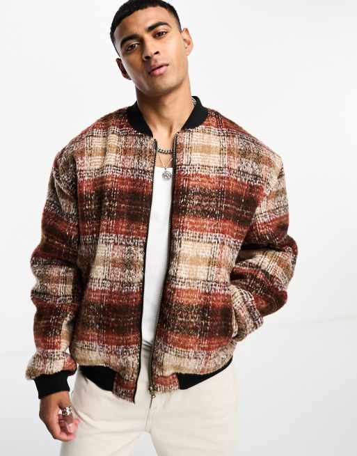 ASOS DESIGN reversible oversized bomber jacket in red check