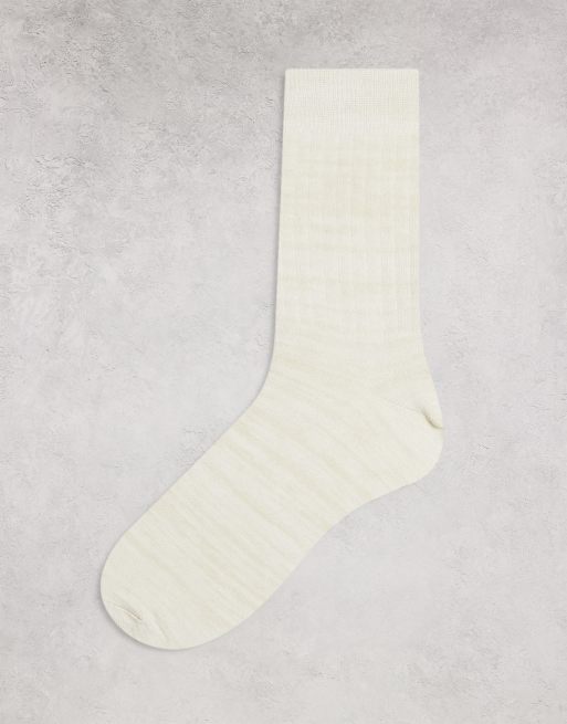 ASOS DESIGN ribbed ankle socks in beige twisted yarn