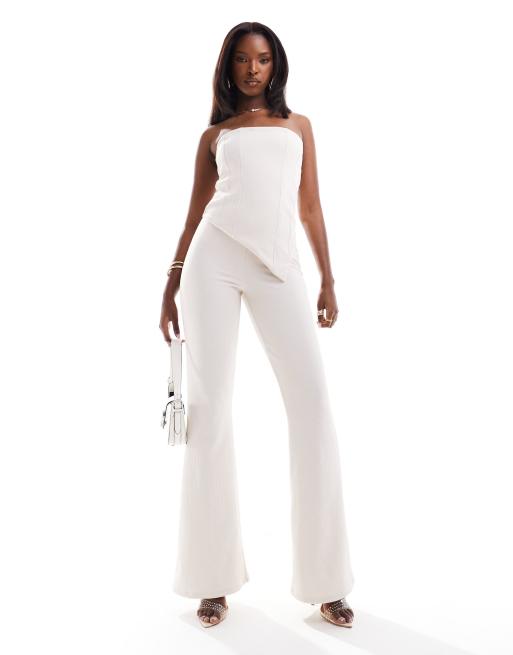 ASOS DESIGN ribbed bandeau top and flare pants set in cream