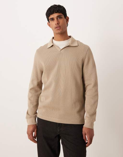 ASOS DESIGN ribbed polo sweatshirt in beige