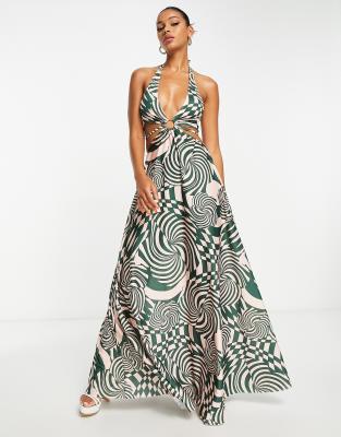 ASOS DESIGN ring detail halter maxi dress in print pattern