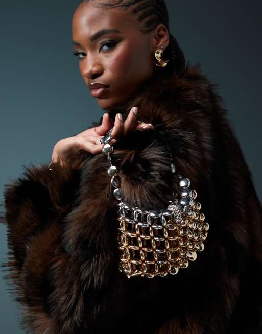 ASOS DESIGN round beaded top handle grab bag in mixed metals