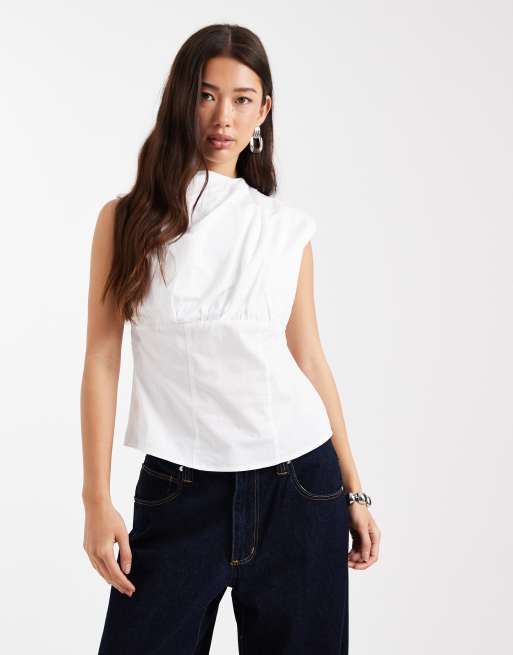 ASOS DESIGN ruched corset top in white