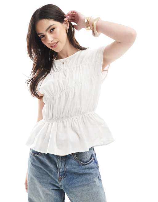 ASOS DESIGN ruched piping detail sleeveless top in white