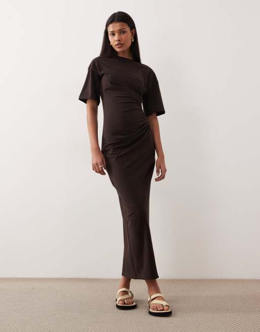 ASOS DESIGN ruched side t-shirt midi dress chocolate