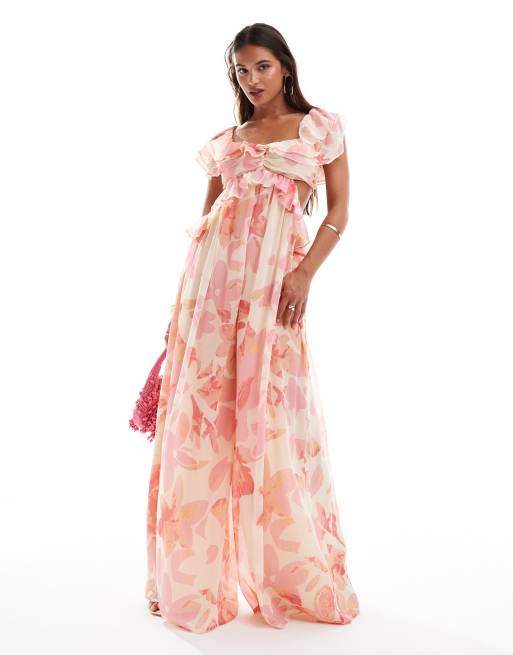 ASOS DESIGN ruffle off the shoulder cut out wide leg jumpsuit