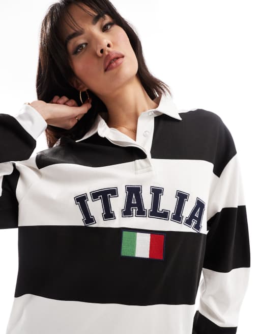 ASOS DESIGN rugby shirt with embroidered italia graphic in mono stripe