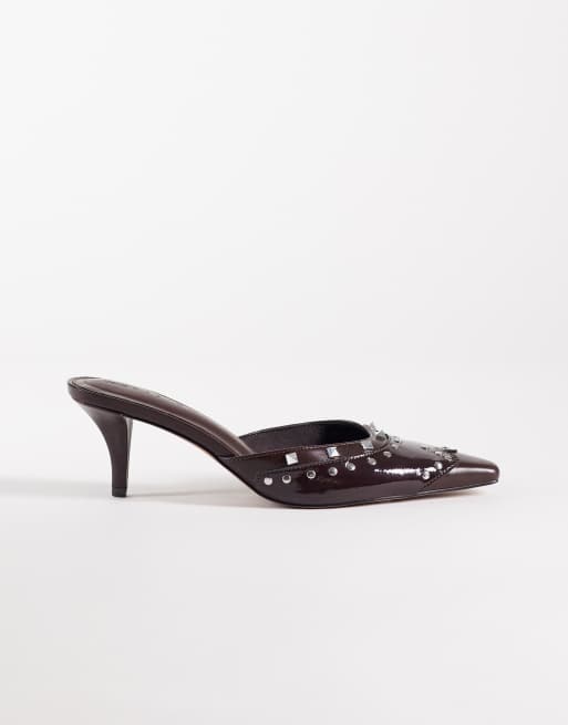 ASOS DESIGN Sammie studded western chisel toe heeled mules in chocolate