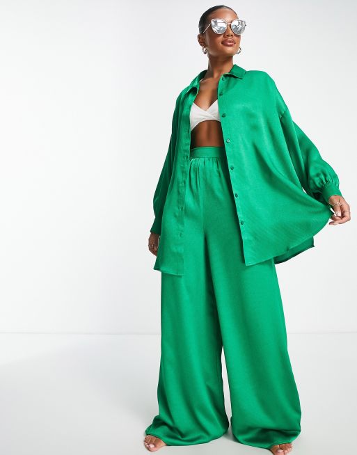 ASOS DESIGN satin beach shirt in green (part of a set)