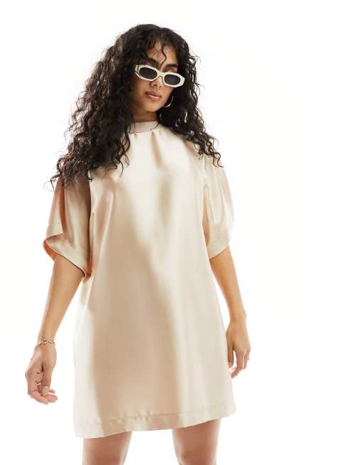 ASOS DESIGN satin oversized mini tshirt dress in champagne