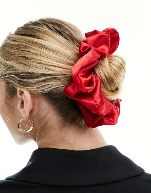 ASOS DESIGN satin scrunchie in red