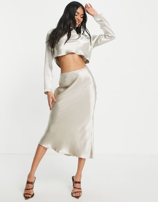 ASOS DESIGN satin slip midi skirt in silver (part of a set)