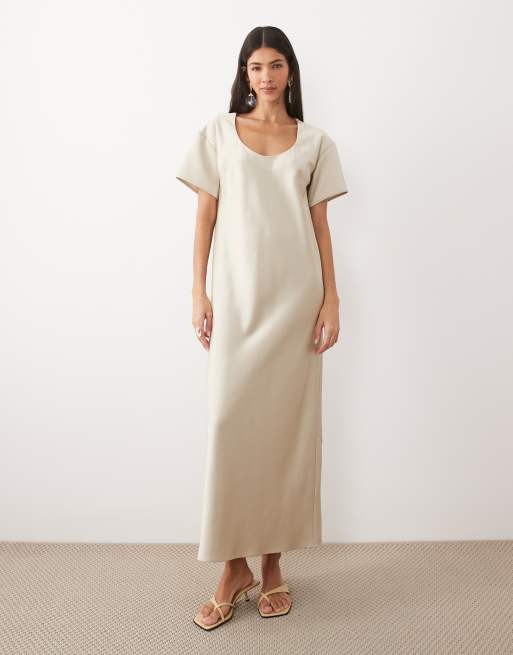 ASOS DESIGN scoop neck heavy satin maxi dress in cream