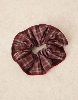 ASOS DESIGN scrunchie in red tartan check with stitching edge detail