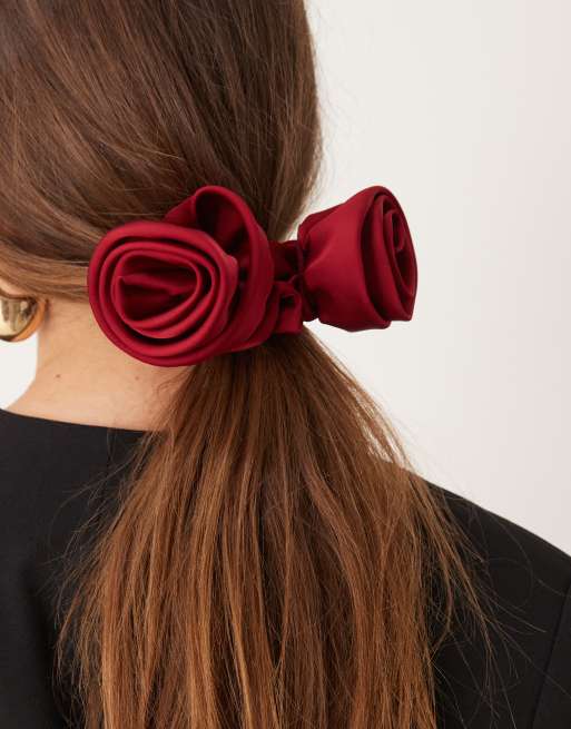 ASOS DESIGN scrunchie with corsage detail in burgundy