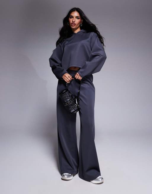 ASOS DESIGN scuba hoodie with cocoon sleeve and trackies set in slate grey
