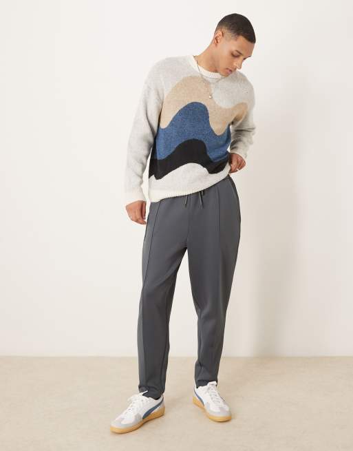 ASOS DESIGN scuba tapered trackies with pin tucks in washed black