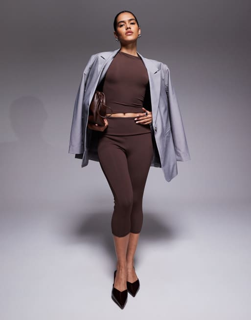 ASOS DESIGN Sculpt baby tee and capri pants set in brown