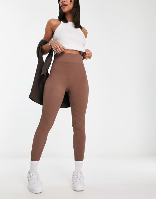 ASOS DESIGN seamless ribbed leggings in mocha