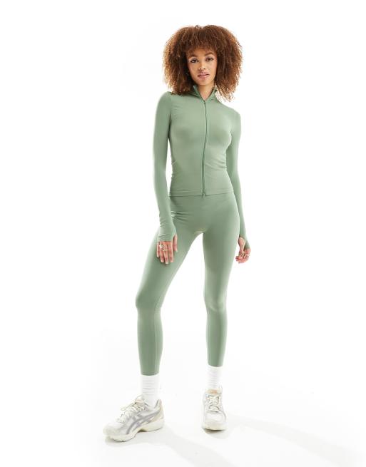 ASOS DESIGN seamless sculpting flat leggings in sage (part of a set)