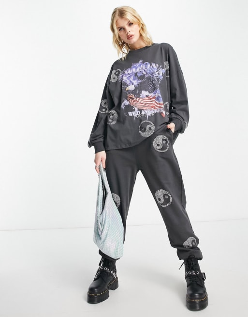 ASOS DESIGN set hot fix yin yang graphic trackies & long sleeve top