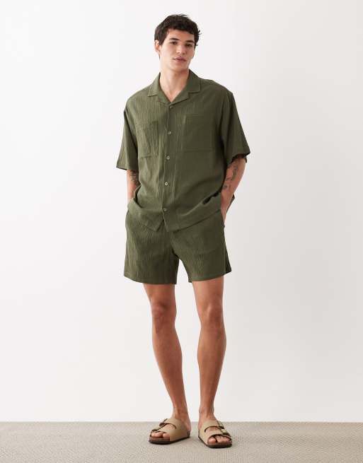 ASOS DESIGN set in crinkle texture in dark green