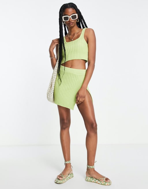 ASOS DESIGN set knitted wide rib mini skirt and crop top in green