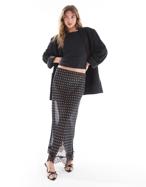 ASOS DESIGN sheer chiffon maxi skirt in polka dot