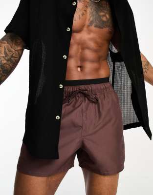 ASOS DESIGN short length swim shorts in brown