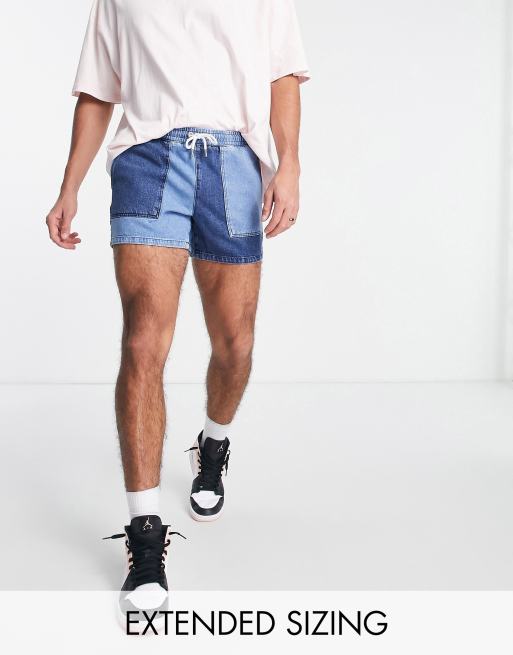 ASOS DESIGN shorter length denim shorts in contrast blue with elasticated waist